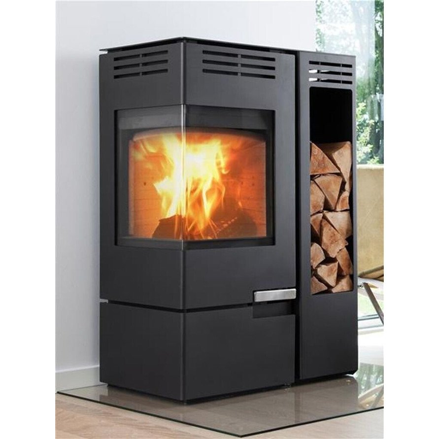 Das robuste Stahlmaterial und die elegante Eckscheibe machen den Kaminofen nicht nur zum funktionalen Heizgerät, sondern auch zum stilvollen Einrichtungselement in Ihrem Zuhause. Zusätzliche Optionen wie Rauchrohre und Wandfutter gewährleisten eine flexible Installation.