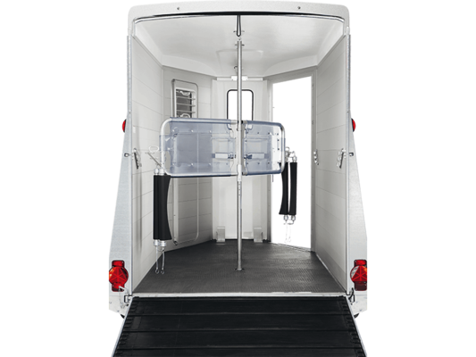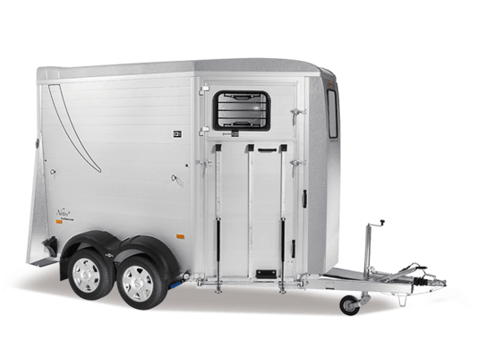Multifunktionalität in neuer attraktiver Verpackung. Die neuen Notos® Modelle in Plywood oder Alu zeichnen sich durch Ihre Vielseitigkeit aus. Die dreh- und schwenkbare, gasfederunterstützte Auflaufklappe hinten ist das erste Highlight. Eine drehbare Mittelpfostentrennwand kann man dank vertikalem Mittelpfosten so verstellen, dass Ihr Pferd bei Bedarf komfortabel durch den optionalen Frontausstieg links oder rechts nach vorne aussteigen kann. Das EquiSpace®-Raumkonzept und EquiDrive®-Fahrwerk sind serienmäßig mit dabei. Ein umfangreiches Zubehörprogramm komplettiert auf Wunsch dieses Allround- Anhängermodell.