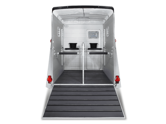Der Notos® PLUS ist die Humbaur Business-Class für Ihren Pferdetransport. Er nimmt zwei Pferde komfortabel mit auf die Reise. Darüber hinaus bietet seine großzügige Kabine im Bug (nach Wunsch ausbaubar) mit viel Platz für Sättel, Material und die Belange der Reiter. Die Heckklappe rüsten wir mit einer Gummimatte mit Trittleisten aus. Serienmäßig ausgestattet mit AluBiComp Boden. Die Seitenwände sind aus robusten Aluprofilen und werden durch das Dach und den Bug aus Vollpoly ergänzt. Ein Großraumanhänger der keine Wünsche offen lässt.