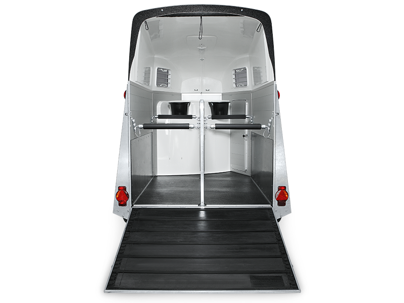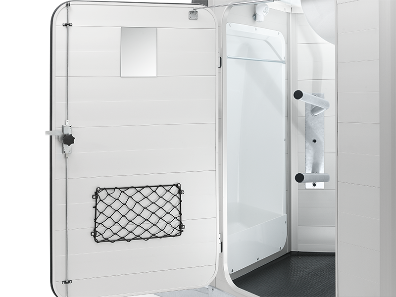 - Abschließbare Sattelkammer mit Sattelhalter, Trensenhalter, Spiegel, Netz, Innenbeleuchtung, Schaufel und Besen