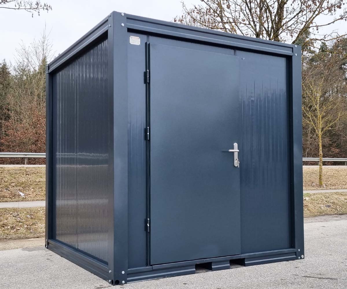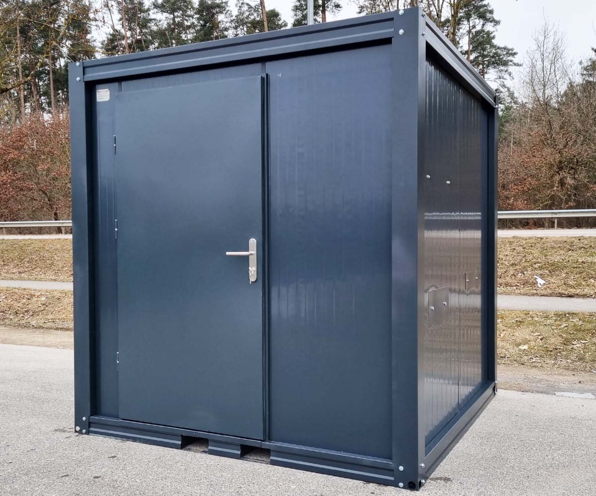 1x Sanitärcontainer – Behinderten Toilette mit Warmwasser und Rampe – RAL 7016 Anthrazit – komplett fertig montiert