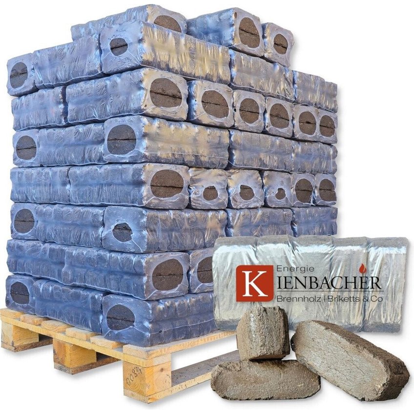 Energie Kienbacher 900 kg Hartholz Torfbriketts – Hochreine Torfkohle auf Palette (90 x 10 kg) | Naturkohle für effizientes Heizen