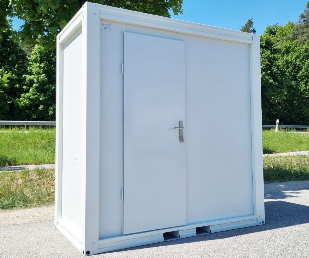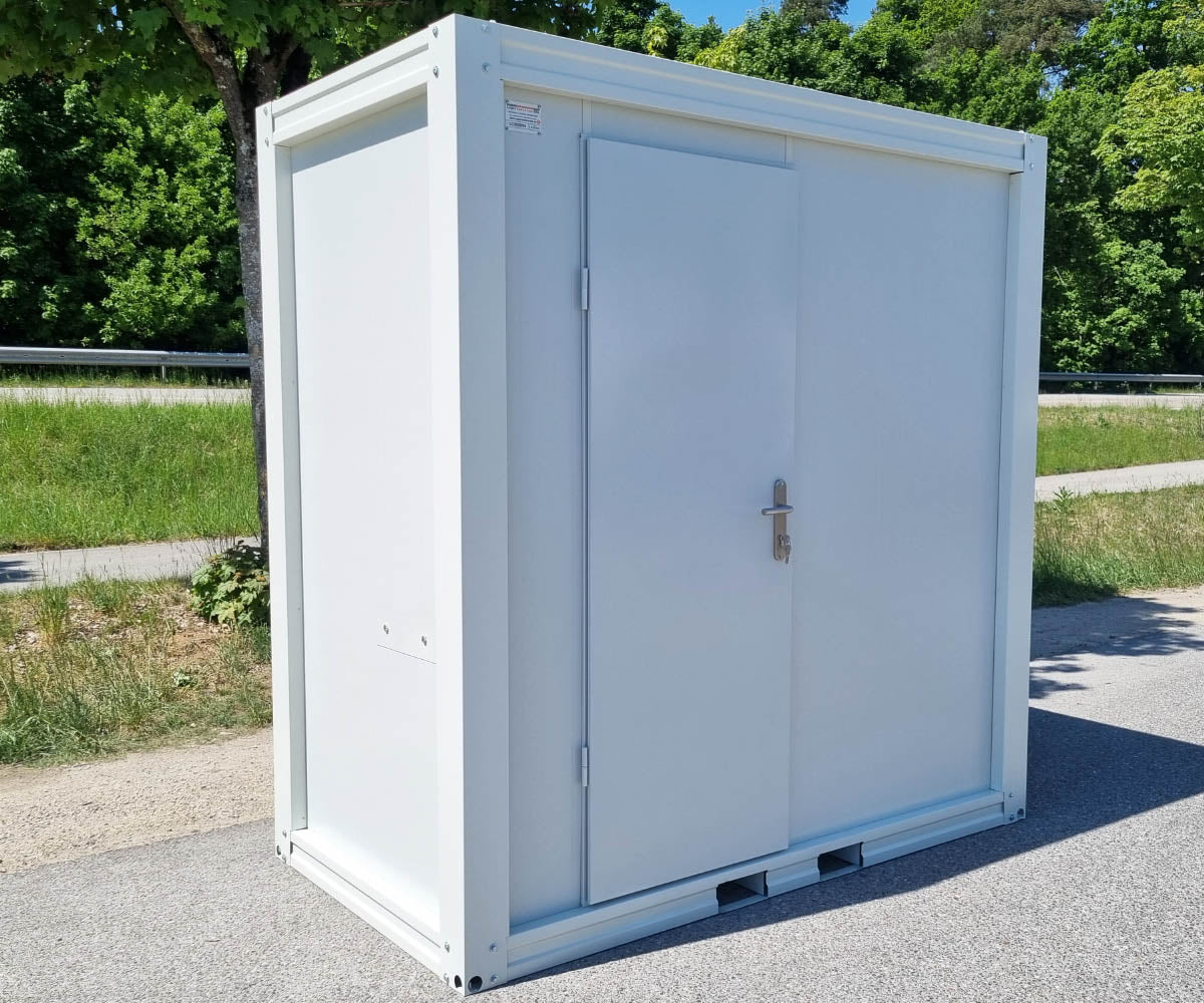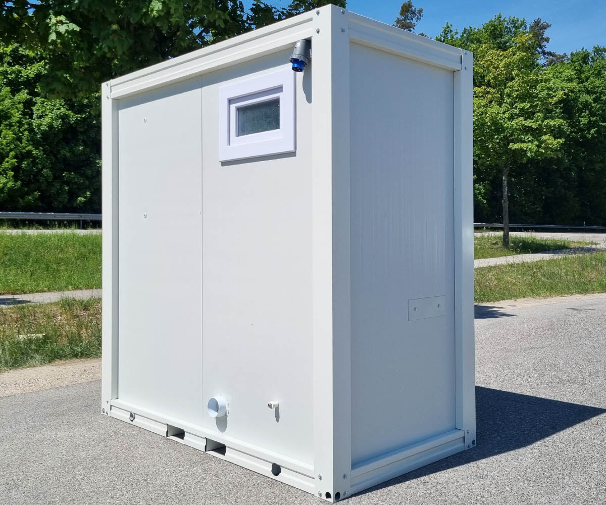1x Großer Sanitärcontainer mit WC Dusche und Warmwasser in RAL9002 weiß