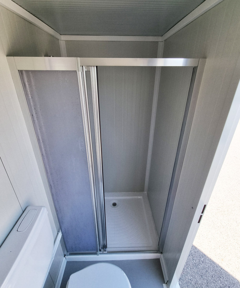 Perfekt geeignet als: Sanitärcontainer, WC Container, Duschcontainer, mobile Toilettenlösung für Baustellen, Events, Industrieanlagen oder Notunterkünfte.