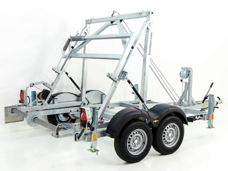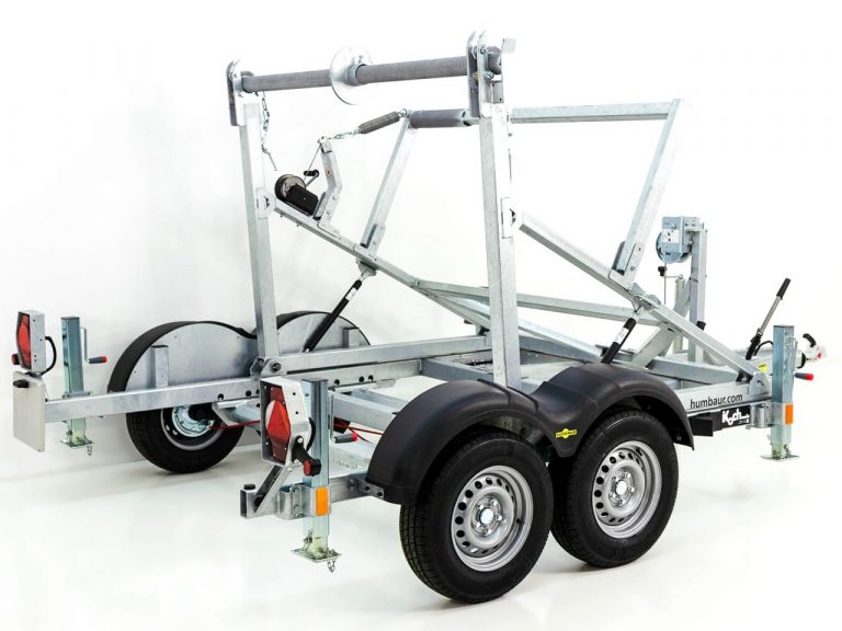Kabeltrommelanhänger mit einer hohen Traglast der Firma Humbaur mit einem Verwindungsstreifes Fahrgestell mit massivem stabilen Aufnahmegestell komplett Tauchbad-Feuerverzinkt.