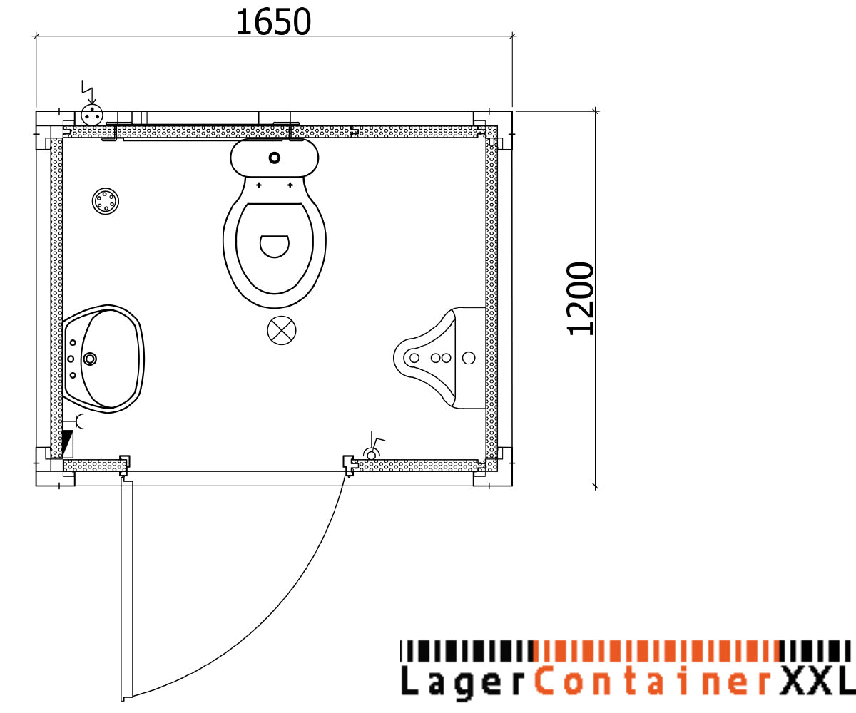 Sanitärcontainer RAL 9002 – Klo Pissoir Waschbecken mit Warmwasser