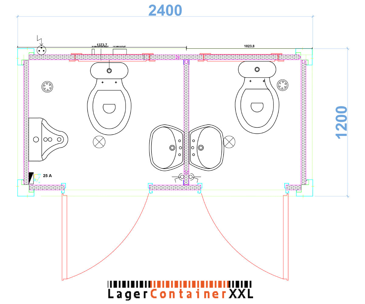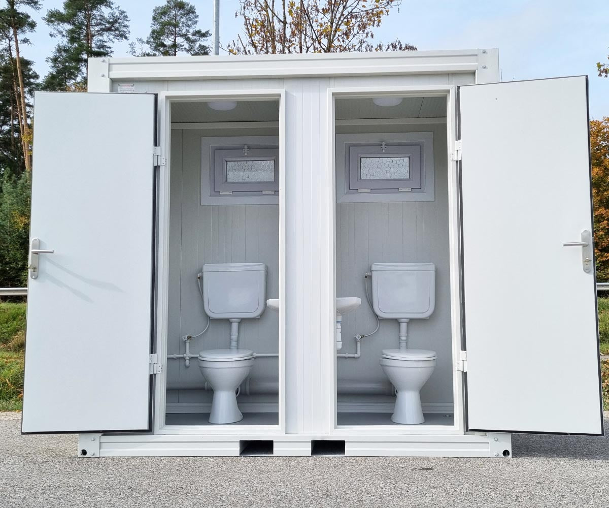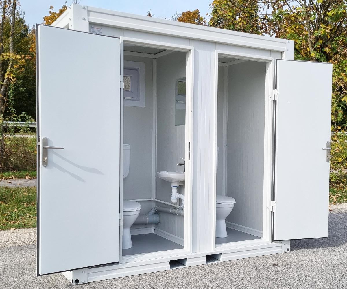 1x WC Sanitärcontainer Toilette mit Doppelkabine – Klo für Mann und Frau – RAL 9002 Weiß